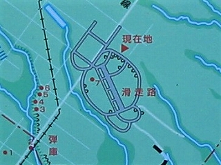 基地は、長さ1,200m、幅200mの滑走路と長さ1,300m、幅120mの予備滑走路、弾薬庫8棟、掩体壕12基、兵舎2棟、司令室、通信室、主計室、戦闘指揮所等の建物が建てられ、兵員28名が配置されましたが、終戦まで軍用機が使用されることはありませんでした。