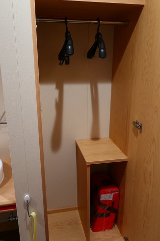 扉付きのクロークは、一人で使うには十分な容量で、下部に荷物を置くこともできます。