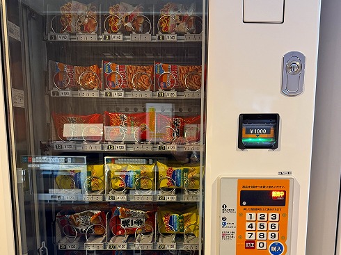 その隣にはスナック菓子の自販機。スナック菓子は、売店の営業時間であれば、そちらでも購入することができます。乗船時の価格は120円または130円でした。