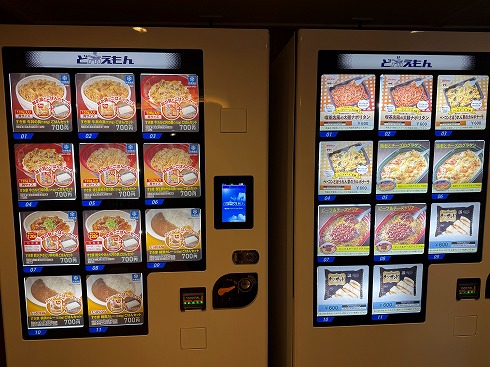 食事は、案内所横にある自販機で売っている冷凍食品を購入して電子レンジで温めて食べるか、売店で売っているインスタント食品を購入して食べるか、乗船前にスーパーやコンビニで食料を調達して船内に持ち込んで食べることになります。