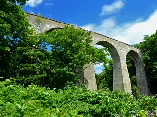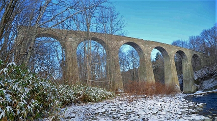 旧国鉄根北線を通すために1939年(昭和14年)に造られた長さ147m、高さ21.6mある10連アーチ橋は、道内で戦前に造られたコンクリートアーチ橋では最大のもので、1998(平成10)年には国の登録有形文化財に指定されています。